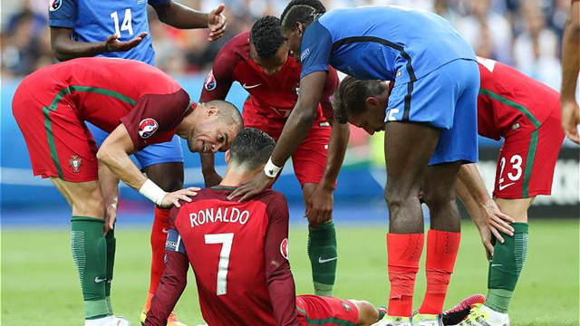 La final de la Eurocopa 2016 ante el local, Francia, lo tuvo apenas 23 minutos en cancha por una lesión que lo obligó a salir: el crack intentó continuar en el campo de juego un par de jugadas más pero no logró superar el choque con Payet.